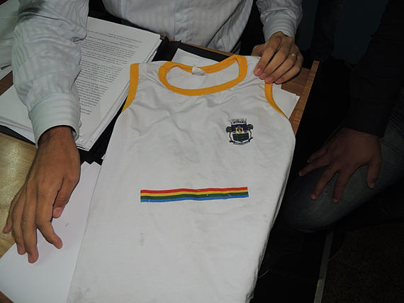 A polêmica criada nos últimos dias ganhou um novo capítulo. Depois do texto que aborda a identidade de gênero e as orientações por parte dos profissionais da educação, surgiu na Audiência Pública da última segunda-feira (6), um uniforme escolar, que segundo informações do vereador Dr. Marcus Vinícius, é sim da rede municipal, e como vocês podem observar nas imagens abaixo, o mesmo leva as cores de um arco-íris, que na visão de muitos cristãos é uma referência à bandeira do movimento LGBT. Religiosos estão revoltados com a situação. Eles exigem que a prefeita Lucimar (PT) e a Secretaria de Educação retirem imediatamente todos os uniformes das escolas municipais.